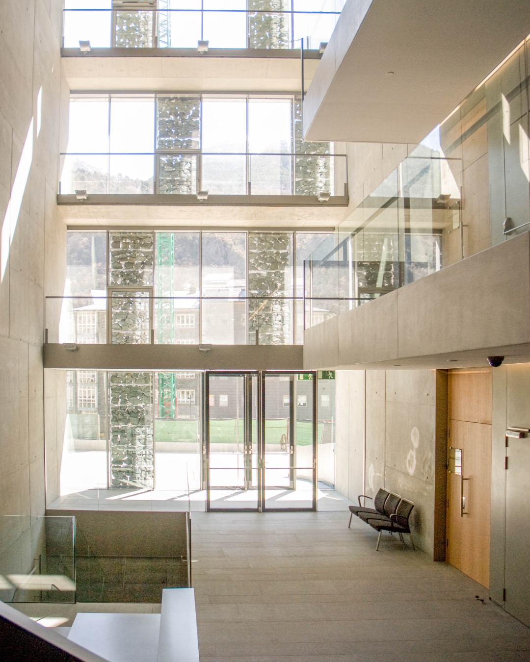 ampliació contemporània amb façanes de vidre i pedra que simbolitzen transparència i